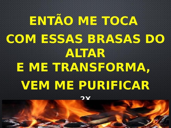- Então me toca com essas brasas do altarE me transforma, vem me purificar2x