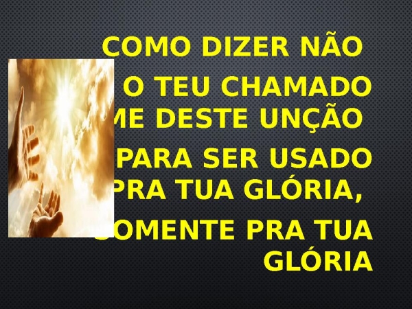 - Como dizer não para o Teu chamadoSe me deste unção para ser usadoPra Tua glória, somente pra Tua glória