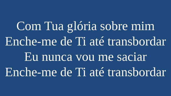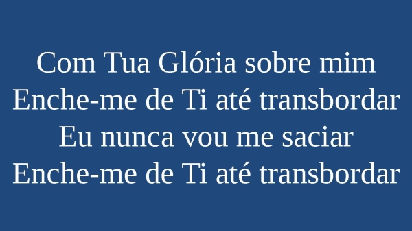 - Com Tua Glória sobre mimEnche-me de Ti até transbordarEu nunca vou me saciarEnche-me de Ti até transbordar
