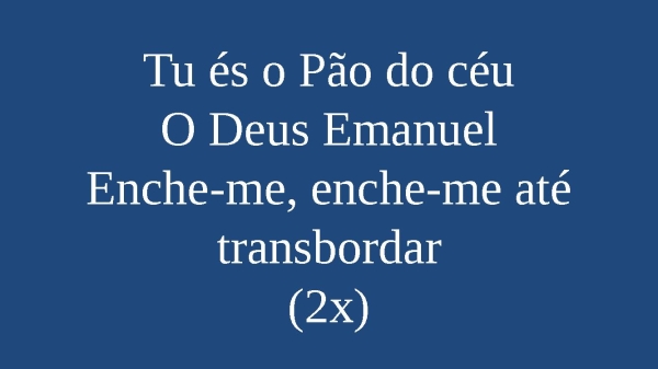 - Tu és o Pão do céuO Deus EmanuelEnche-me, enche-me até transbordar(2x)
