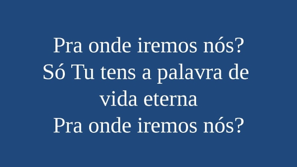 - Pra onde iremos nós?Só Tu tens a palavra de vida eternaPra onde iremos nós?