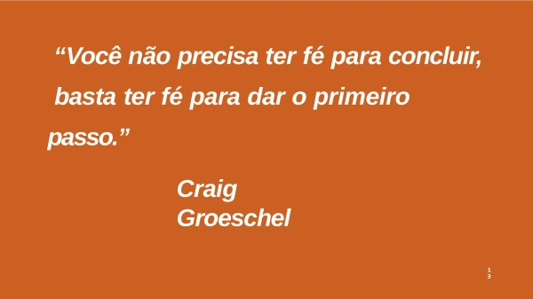 - “Você não precisa ter fé para concluir, basta ter fé para dar o primeiro passo.”Craig Groeschel13