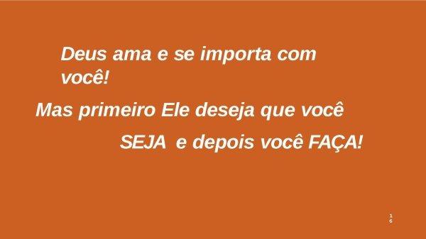 - Deus ama e se importa com você!Mas primeiro Ele deseja que você SEJA e depois você FAÇA!16