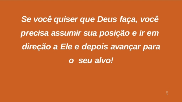 - Se você quiser que Deus faça, você precisa assumir sua posição e ir em direção a Ele e depois avançar para o seu alvo!21