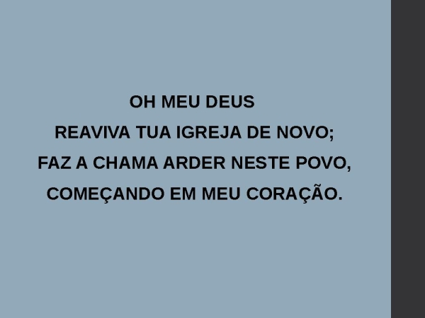 - OH MEU DEUS REAVIVA TUA IGREJA DE NOVO; FAZ A CHAMA ARDER NESTE POVO, COMEÇANDO EM MEU CORAÇÃO.