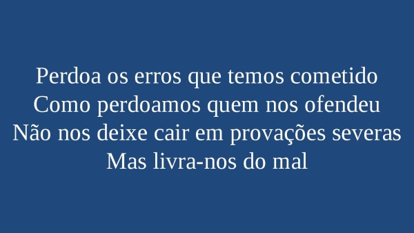 - Perdoa os erros que temos cometidoComo perdoamos quem nos ofendeuNão nos deixe cair em provações severasMas livra-nos do mal