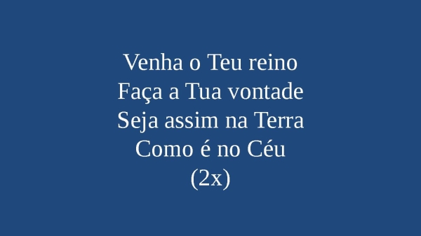 - Venha o Teu reinoFaça a Tua vontadeSeja assim na TerraComo é no Céu(2x)