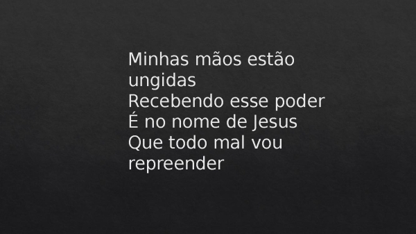 - Minhas mãos estão ungidasRecebendo esse poderÉ no nome de JesusQue todo mal vou repreender
