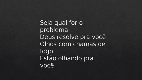 - Seja qual for o problemaDeus resolve pra vocêOlhos com chamas de fogoEstão olhando pra você