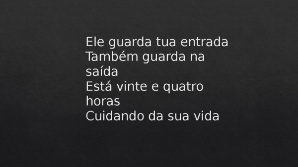 - Ele guarda tua entradaTambém guarda na saídaEstá vinte e quatro horasCuidando da sua vida