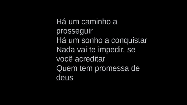 - Há um caminho a prosseguirHá um sonho a conquistarNada vai te impedir, se você acreditarQuem tem promessa de deus