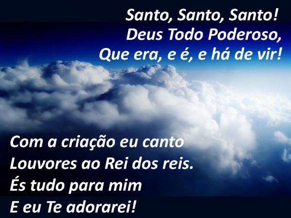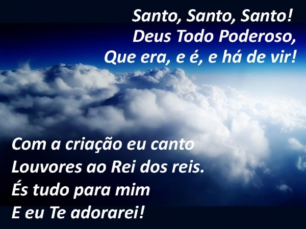 - Santo, Santo, Santo! Deus Todo Poderoso,Que era, e é, e há de vir!Com a criação eu cantoLouvores ao Rei dos reis.És tudo para mimE eu Te adorarei!