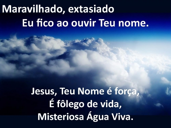 - Maravilhado, extasiado Eu fico ao ouvir Teu nome.Jesus, Teu Nome é força,É fôlego de vida,Misteriosa Água Viva.