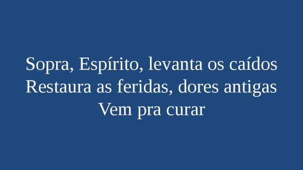 - Sopra, Espírito, levanta os caídosRestaura as feridas, dores antigasVem pra curar