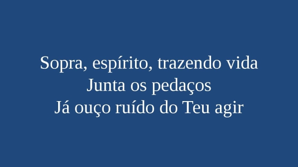 - Sopra, espírito, trazendo vidaJunta os pedaçosJá ouço ruído do Teu agir