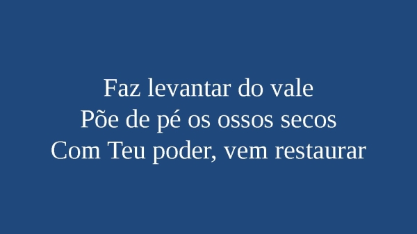 - Faz levantar do valePõe de pé os ossos secosCom Teu poder, vem restaurar