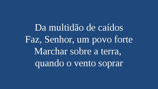 - Da multidão de caídosFaz, Senhor, um povo forteMarchar sobre a terra, quando o vento soprar