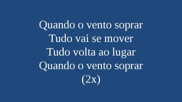 - Quando o vento soprarTudo vai se moverTudo volta ao lugarQuando o vento soprar(4x)