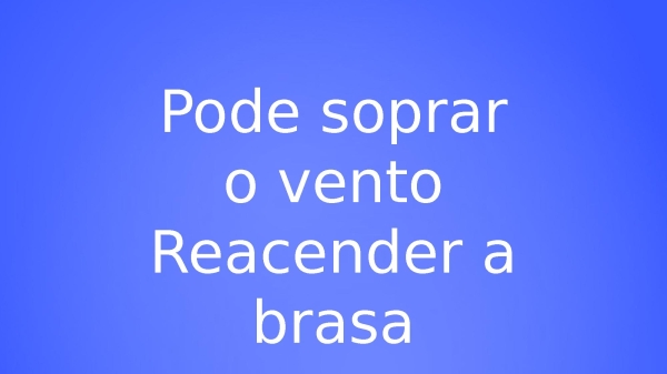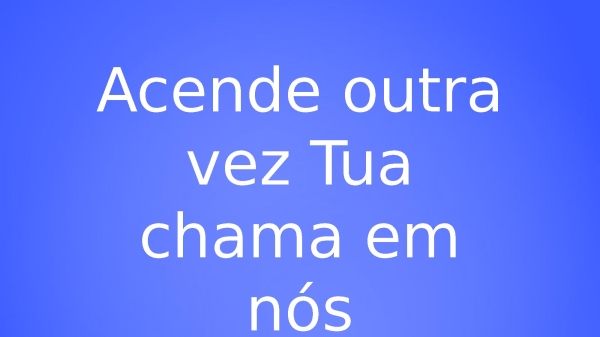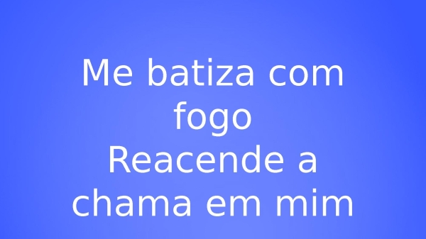 Ouço um barulho diferente É como um vento veemente Eu vejo línguas como o que de fogo Pousando sobre o ambiente Nós estamos reunidos A casa está preparada Pode soprar o vento Reacender a brasa Nós estamos reunidos A casa está preparada Pode soprar o vento Reacender a brasa Me batiza com fogo Reacende a chama em mim Me batiza com fogo Reacende a chama em mim Ouço um barulho diferente É como um vento veemente Eu vejo línguas como o que de fogo Pousando sobre o ambiente Nós estamos reunidos A casa está preparada Pode soprar o vento Reacender a brasa Nós estamos reunidos A casa está preparada Pode soprar o vento Reacender a brasa Me batiza com fogo Reacende a chama em mim Me batiza com fogo Reacende a chama em mim Acende outra vez Tua chama em nós Aviva outra vez Aviva outra vez Acende outra vez Tua chama em nós Aviva outra vez Aviva outra vez Acende outra vez Tua chama em nós Aviva outra vez Aviva outra vez A nossa geração tem lenha pra queimar Pode incendiar Vem nos batizar A nossa geração tem lenha pra queimar Pode incendiar Vem nos batizar A nossa geração tem lenha pra queimar Pode incendiar Vem nos batizar A nossa geração tem lenha pra queimar Pode incendiar Vem nos batizar Me batiza com fogo Reacende a chama em mim Me batiza com fogo Reacende a chama em mim A nossa geração tem lenha pra queimar Pode incendiar Vem nos batizar A nossa geração tem lenha pra queimar Pode incendiar Vem nos batizar A nossa geração tem lenha pra queimar Pode incendiar Vem nos batizar Me batiza com fogo Reacende a chama em mim Me batiza com fogo Reacende a chama em mim