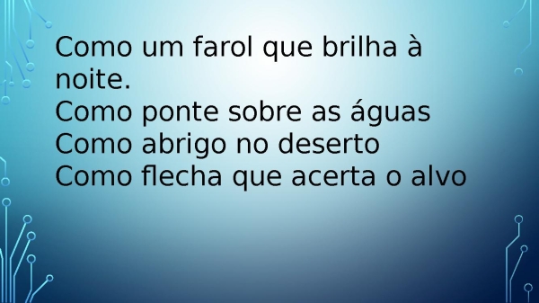 - Como um farol que brilha à noite.Como ponte sobre as águasComo abrigo no desertoComo flecha que acerta o alvo