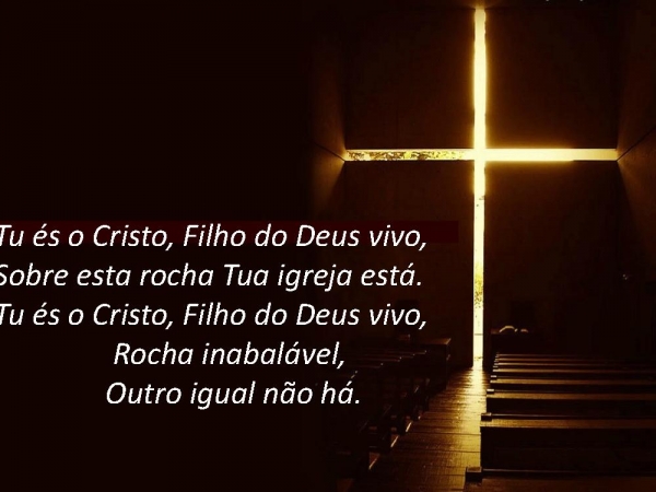 - Tu és o Cristo, Filho do Deus vivo, Sobre esta rocha Tua igreja está. Tu és o Cristo, Filho do Deus vivo, Rocha inabalável, Outro igual não há.