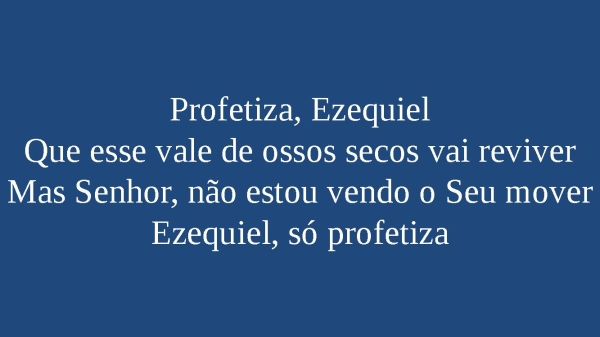 - Profetiza, EzequielQue esse vale de ossos secos vai reviverMas Senhor, não estou vendo o Seu moverEzequiel, só profetiza