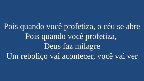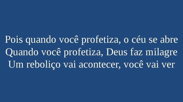 - Pois quando você profetiza, o céu se abreQuando você profetiza, Deus faz milagreUm reboliço vai acontecer, você vai ver