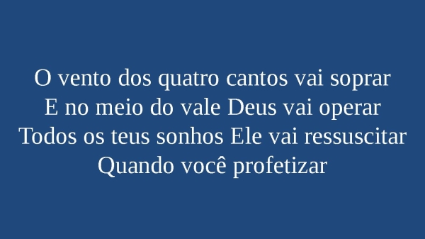 - O vento dos quatro cantos vai soprarE no meio do vale Deus vai operarTodos os teus sonhos Ele vai ressuscitarQuando você profetizar