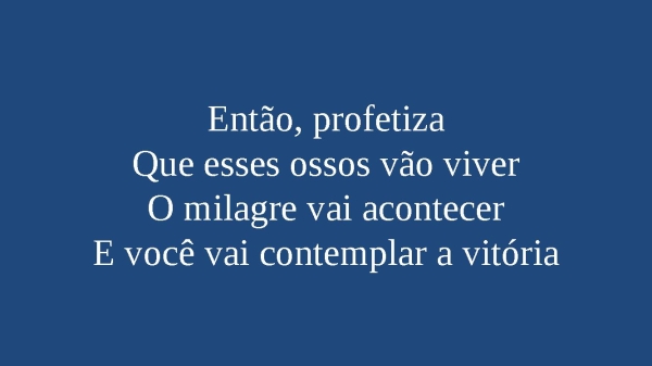 - Então, profetizaQue esses ossos vão viverO milagre vai acontecerE você vai contemplar a vitória