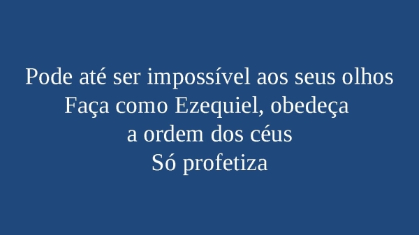 - Pode até ser impossível aos seus olhosFaça como Ezequiel, obedeça a ordem dos céusSó profetiza