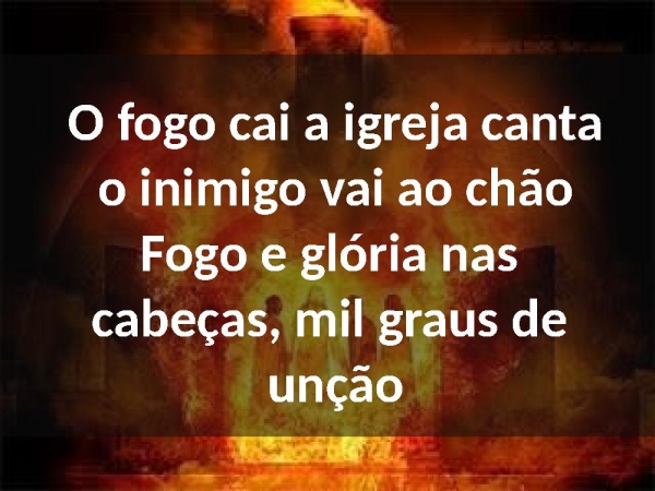 - O fogo cai a igreja canta o inimigo vai ao chão Fogo e glória nas cabeças, mil graus de unção