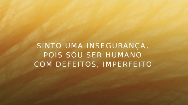 - Sinto uma insegurança,Pois sou ser humanoCom defeitos, imperfeito