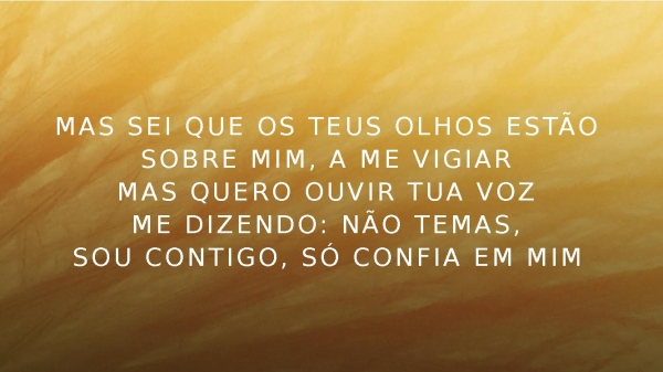 - Mas sei que os Teus olhos estãoSobre mim, a me vigiarMas quero ouvir Tua vozMe dizendo: Não temas,Sou contigo, Só confia em mim