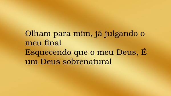 - Olham para mim, já julgando o meu finalEsquecendo que o meu Deus, É um Deus sobrenatural