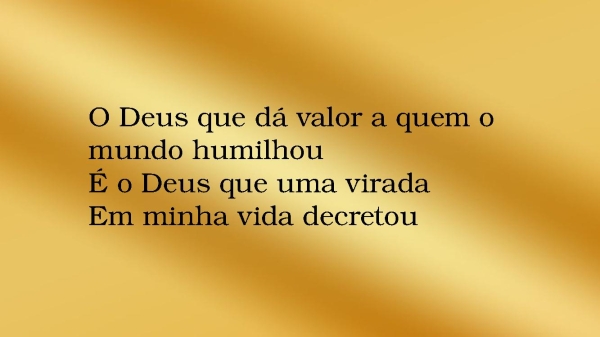 - O Deus que dá valor a quem o mundo humilhouÉ o Deus que uma viradaEm minha vida decretou