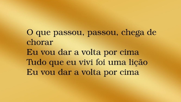 - O que passou, passou, chega de chorarEu vou dar a volta por cimaTudo que eu vivi foi uma liçãoEu vou dar a volta por cima