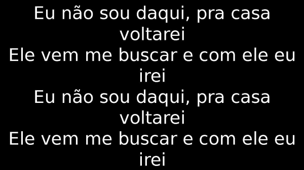 - Eu não sou daqui, pra casa voltareiEle vem me buscar e com ele eu ireiEu não sou daqui, pra casa voltareiEle vem me buscar e com ele eu irei