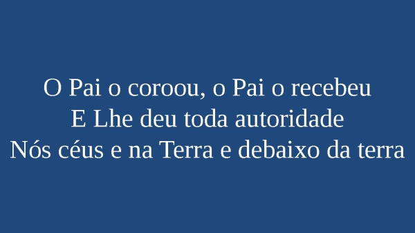 - O Pai o coroou, o Pai o recebeuE Lhe deu toda autoridadeNós céus e na Terra e debaixo da terra