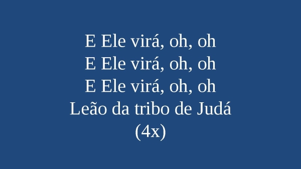 - E Ele virá, oh, ohE Ele virá, oh, ohE Ele virá, oh, ohLeão da tribo de Judá(4x)