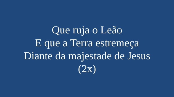 - Que ruja o LeãoE que a Terra estremeçaDiante da majestade de Jesus(2x)