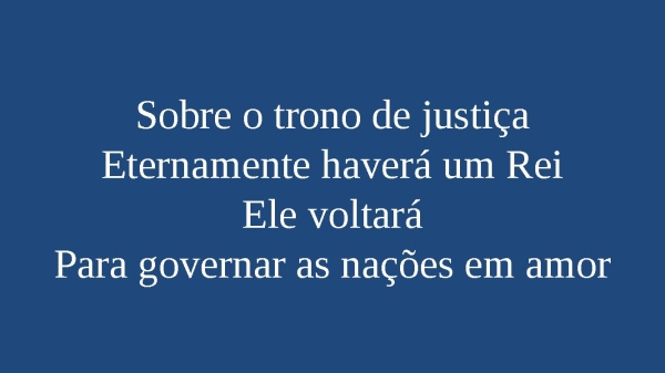- Sobre o trono de justiçaEternamente haverá um ReiEle voltaráPara governar as nações em amor