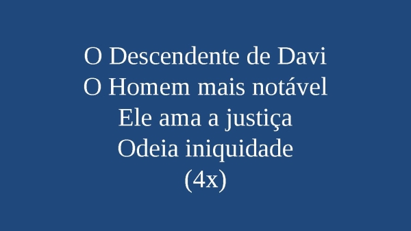 - O Descendente de DaviO Homem mais notávelEle ama a justiçaOdeia iniquidade(4x)