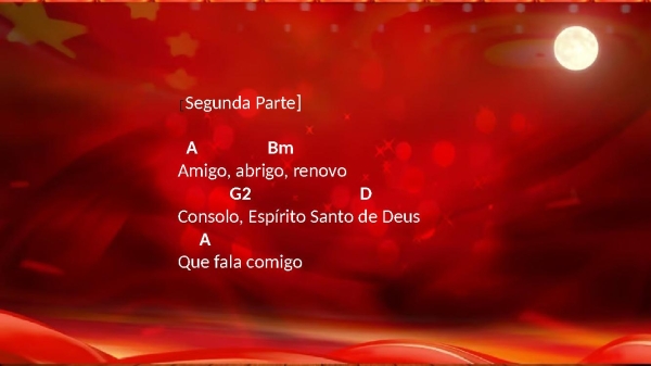- [Segunda Parte]A BmAmigo, abrigo, renovoG2 DConsolo, Espírito Santo de DeusAQue fala comigo