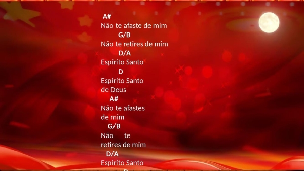 - A#Não te afaste de mimG/BNão te retires de mimD/AEspírito SantoDEspírito Santo de DeusA#Não te afastes de mimG/BNão te retires de mimD/AEspírito SantoDEspírito Santo