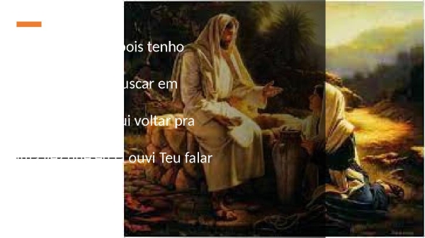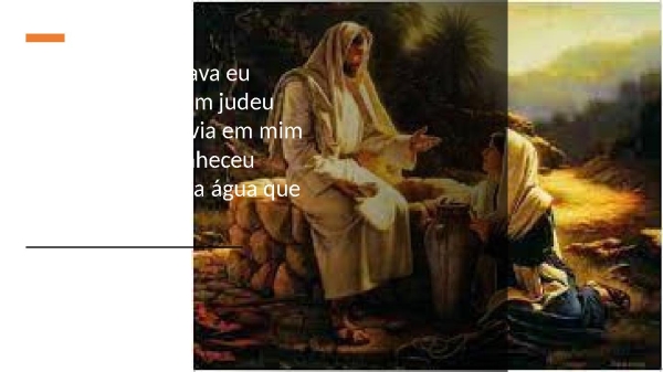- Junto ao poço estava euQuando um homem judeuViu a sede que havia em mimSem me ouvir, conheceuE me ofereceu uma água que jorra sem fim