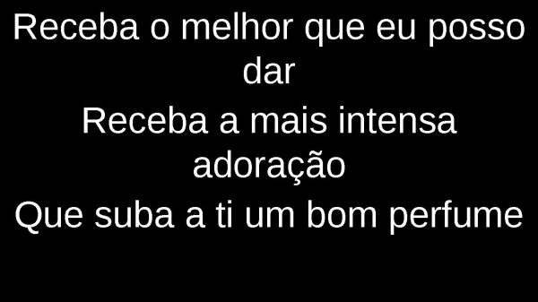 - Receba o melhor que eu posso darReceba a mais intensa adoraçãoQue suba a ti um bom perfume