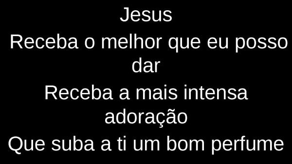 - Jesus Receba o melhor que eu posso darReceba a mais intensa adoraçãoQue suba a ti um bom perfume