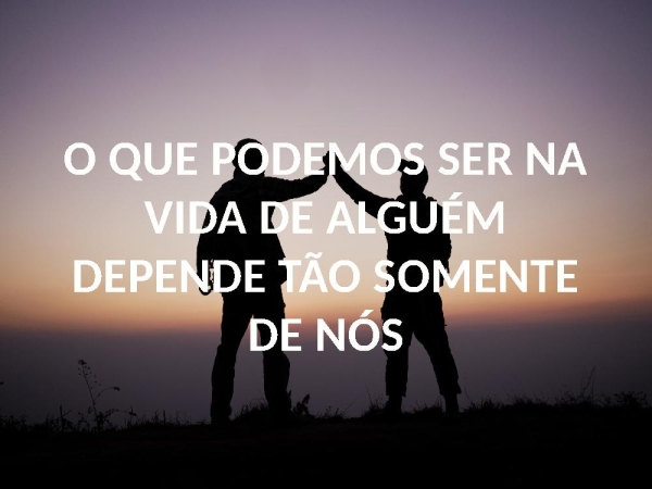 - O QUE PODEMOS SER NA VIDA DE ALGUÉMDEPENDE TÃO SOMENTE DE NÓS