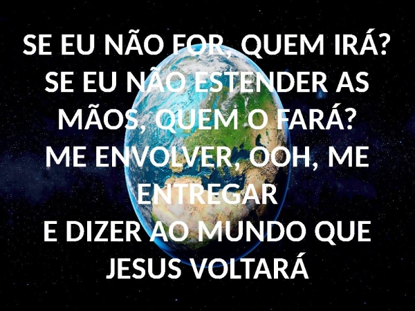 - SE EU NÃO FOR, QUEM IRÁ?SE EU NÃO ESTENDER AS MÃOS, QUEM O FARÁ?ME ENVOLVER, OOH, ME ENTREGARE DIZER AO MUNDO QUE JESUS VOLTARÁ
