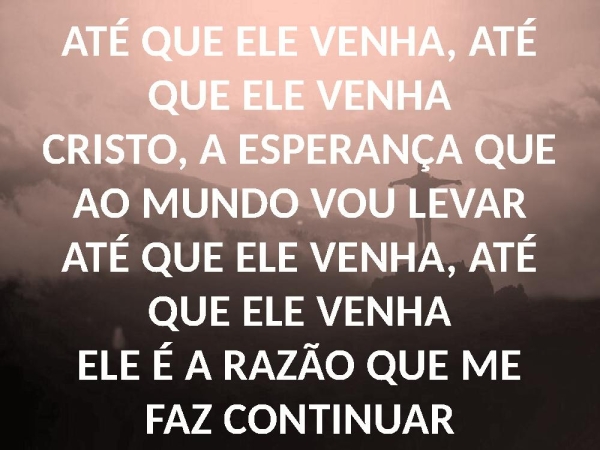 - ATÉ QUE ELE VENHA, ATÉ QUE ELE VENHACRISTO, A ESPERANÇA QUE AO MUNDO VOU LEVARATÉ QUE ELE VENHA, ATÉ QUE ELE VENHAELE É A RAZÃO QUE ME FAZ CONTINUAR